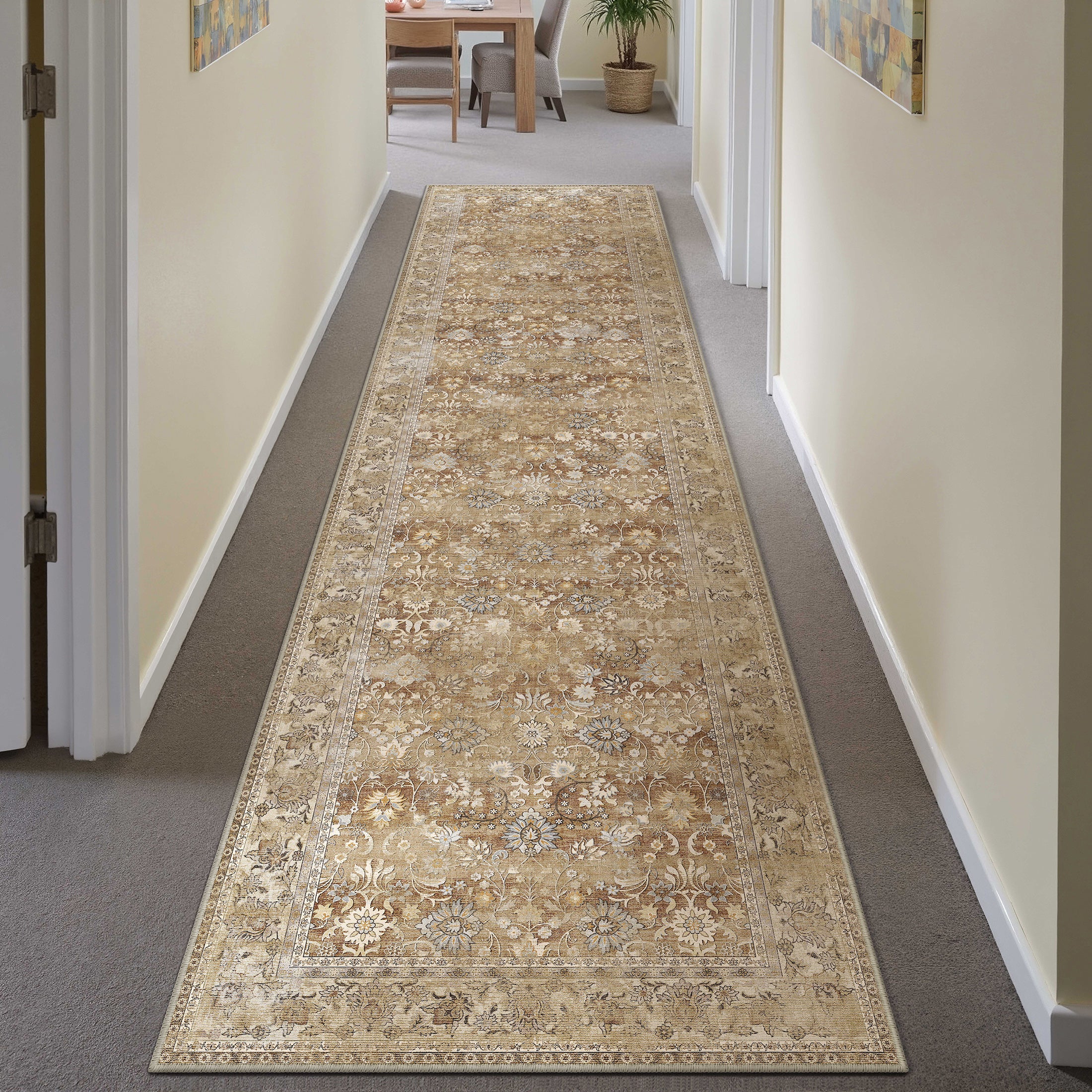Made for real life, Sienna Bloom is stain-resistant, pet-friendly, and machine washable — designed to pair timeless beauty with everyday ease. Its non-slip backing keeps it securely in place, even in high-traffic areas.